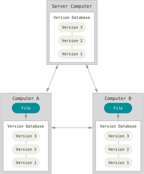 - The first proposed solution to the above problem was to place the VCS on a centralised server (see Figure 4). Developers would check out individual files and work on them locally. After making changes they would check the file back into the remote server. While this configuration allows collaboration it still has the major downside that the entire project is kept in a single location. A single location of course means exposure to a single point of failure.